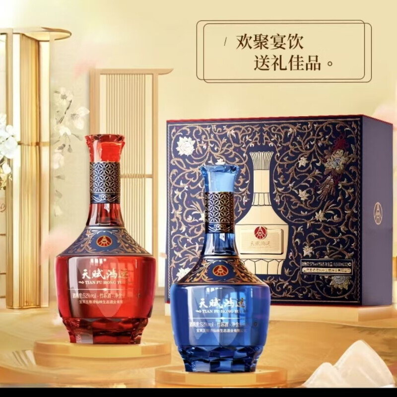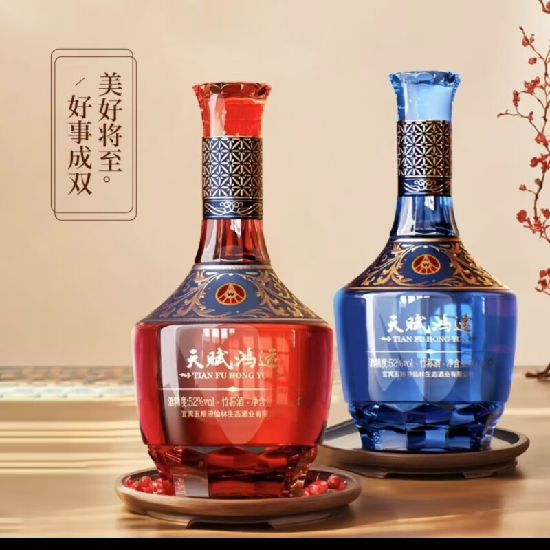 宜宾五粮液仙林生态酒业出品 五粮液 天赋鸿运繁花 52度 竹荪酒 植物类露酒 500ml*2瓶 礼盒