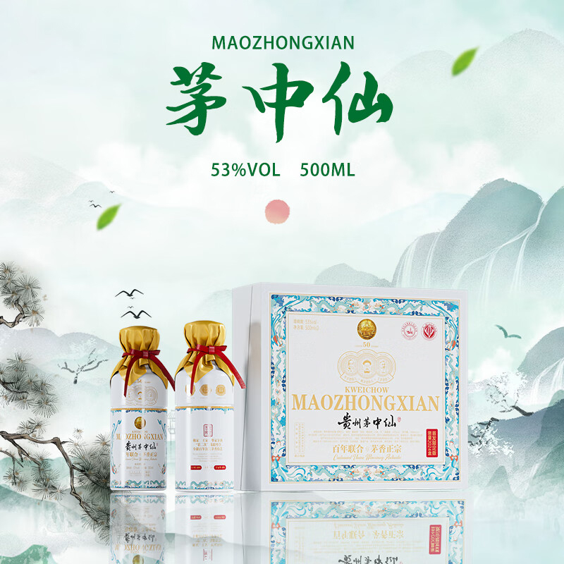 贵州茅中仙酒 53度 酱香型白酒 粮食酒 自饮送礼500ml*2瓶 整箱装