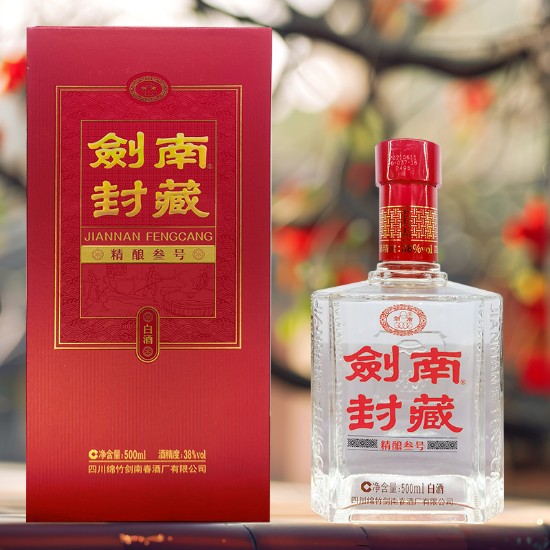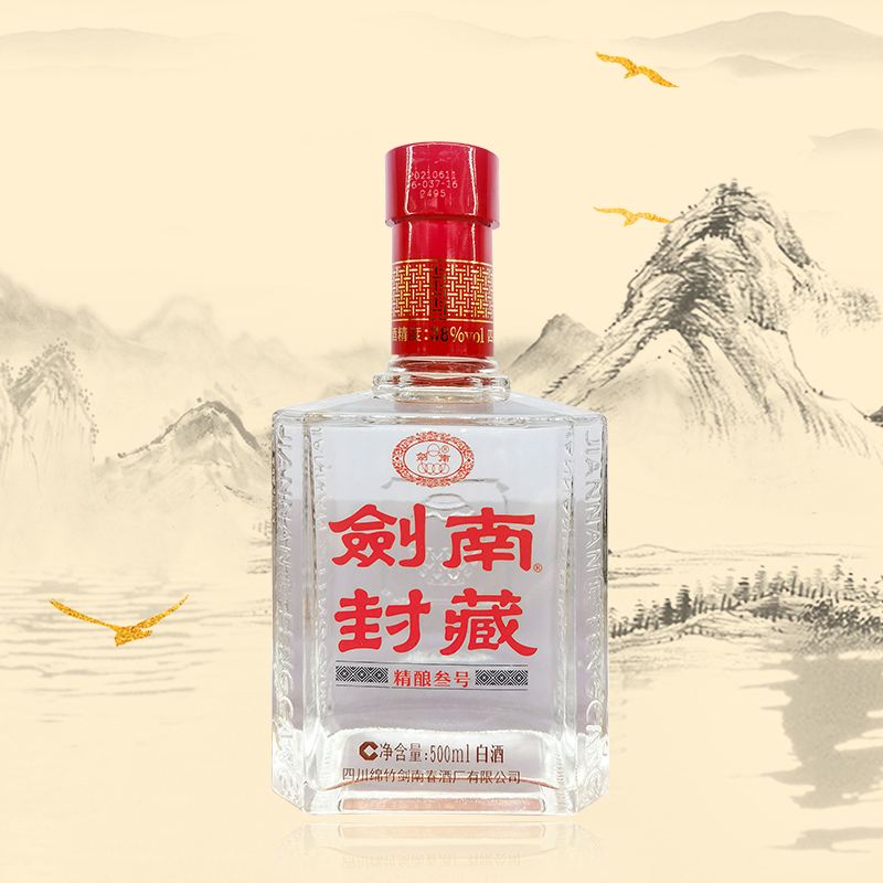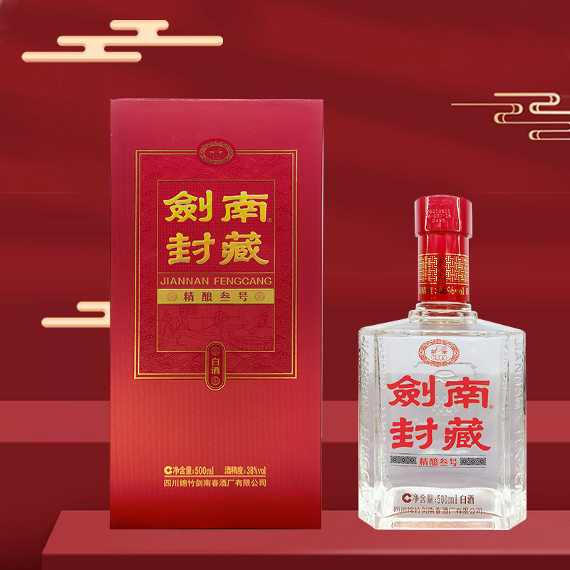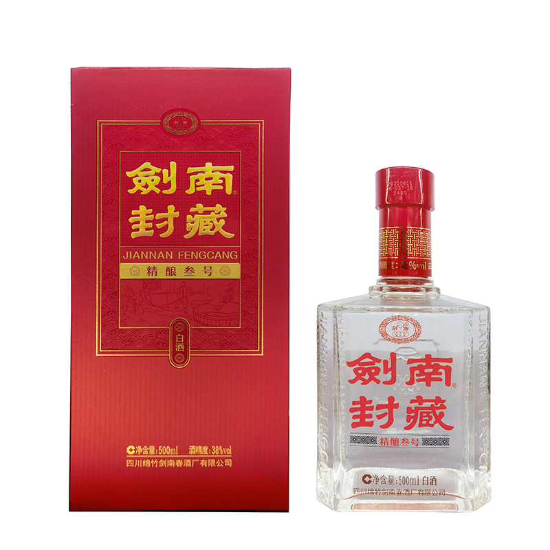 四川绵竹剑南春酒厂出品 剑南封藏 精酿叁号 38度 浓香型白酒 收藏自饮 500ml*6瓶 整箱