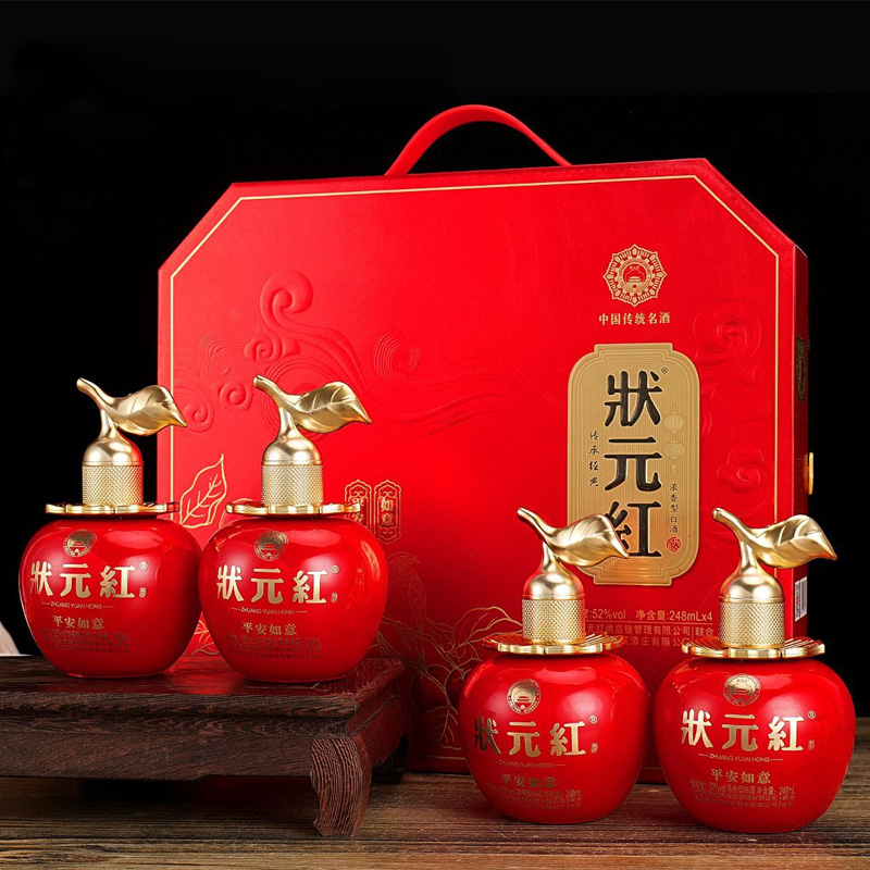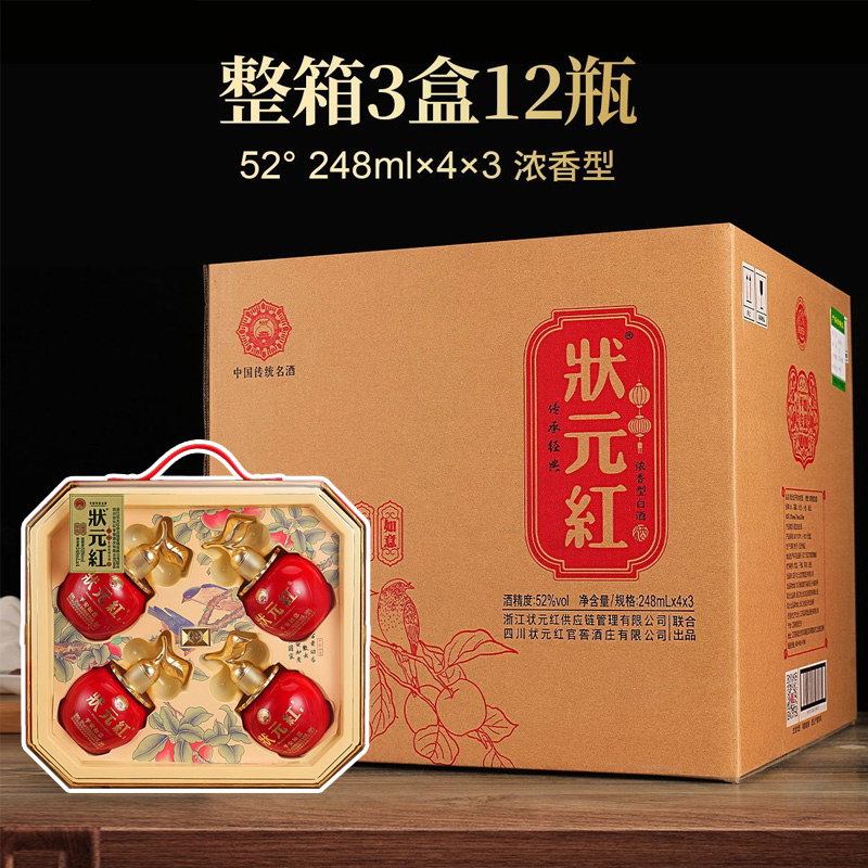 状元红 平安如意 52度 浓香型白酒 纯粮食酒 送礼 收藏 自饮 245ml*4瓶*3盒 整箱装