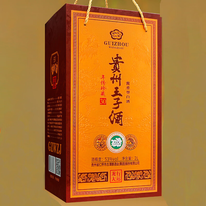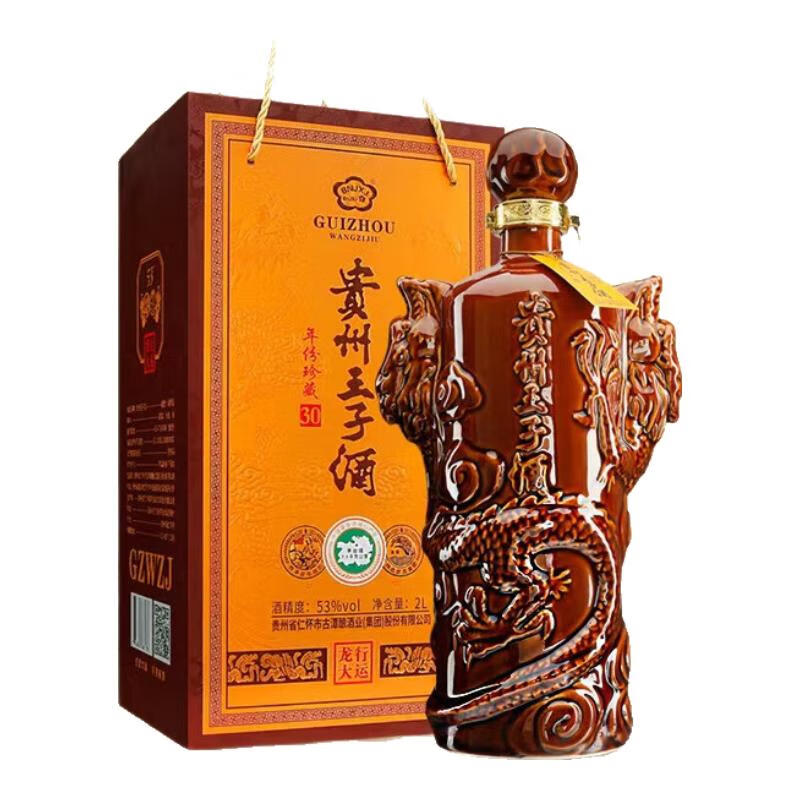 贵州王子酒 年份珍藏30 陶坛 53度 酱香型白酒 摆件酒 送礼酒 2L*2坛 整箱