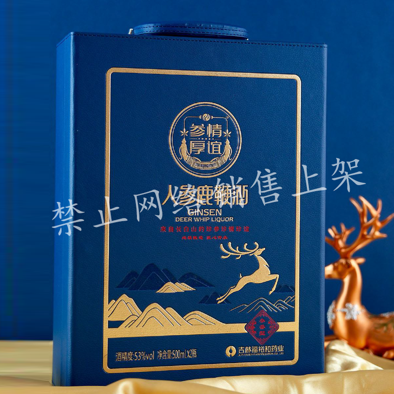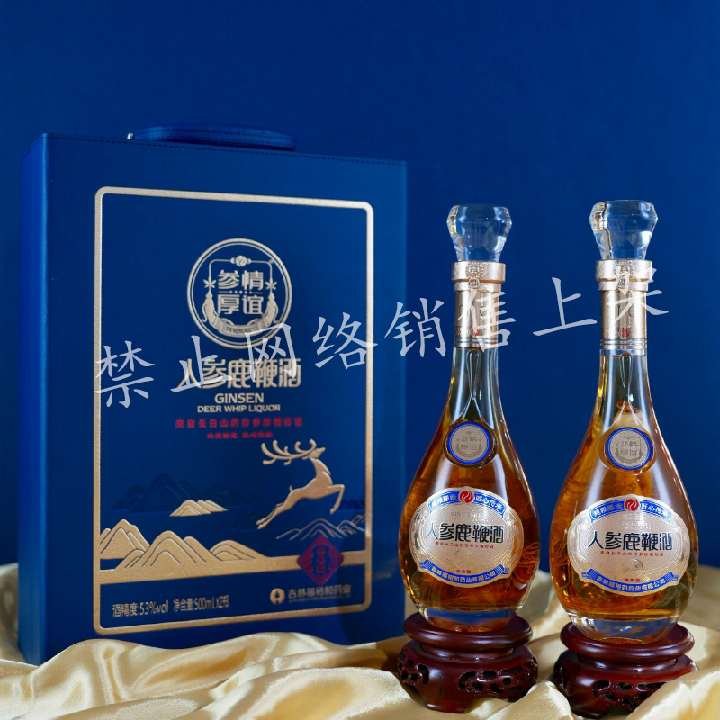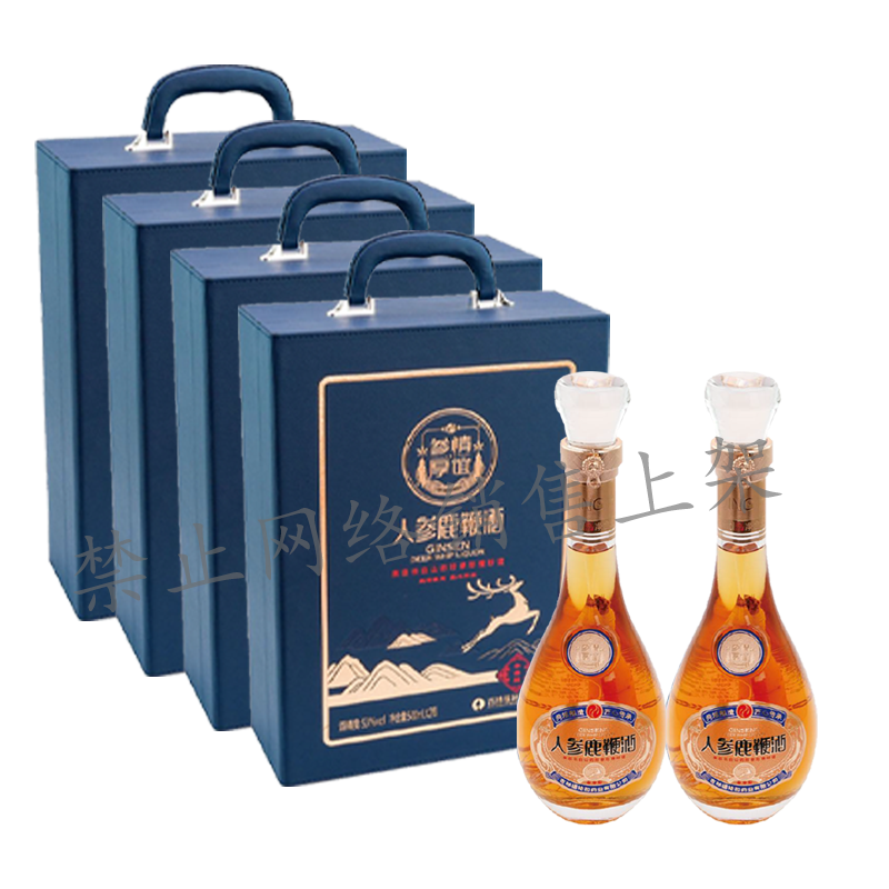 人参鹿鞭酒蓝色 整箱装 禁止网络销售上架 53度 过节送礼佳品 500ml*2瓶*4提 整箱装