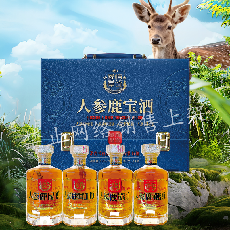 人参鹿宝酒蓝色 礼盒装 禁止网络销售上架 53度 过节送礼佳品 500ml*4瓶